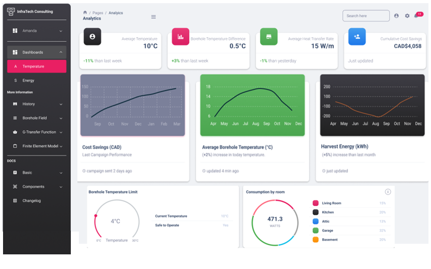 Monitoring geothermal loop field is essential to ensure the system's efficiency, safety, and longevity. Continuous monitoring allows for tracking the performance metrics such as temperature, flow rates, and pressure, ensuring the system operates at its optimal efficiency, which maximizes energy savings and reduces operational costs. Additionally, it enables early detection of potential issues like pipe leaks or freezing, preventing costly repairs and system downtime. We can provide: