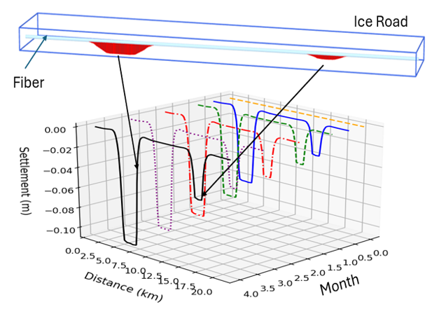 Winter roads face significant challenges due to extreme temperature fluctuations and seasonal changes. It is critical to monitor these ice roads in order to determine ice growth and safe use forecasting to enhance the management and maintenance of these critical infrastructure elements. Our fiber optic sensing technology offers a reliable, cost-effective, and integrated solution for ice road monitoring: