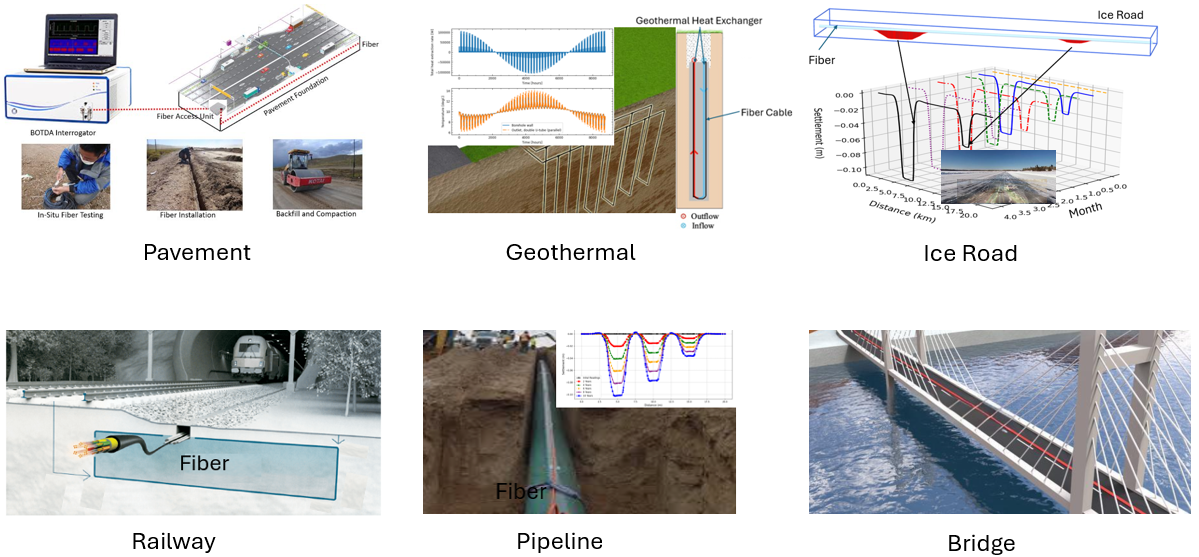 Our mission is to provide innovative, real-time monitoring solutions that ensure the safety, longevity, and efficiency of infrastructures. Our team provides tailored solutions for the distributed temperature and strain sensing for pavement, geothermal, ice road, railway, pipeline, bridge and other infrastructures.